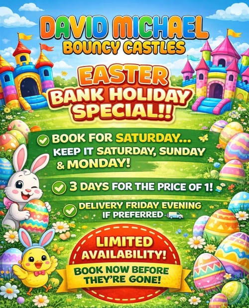 Welcome to David Michael Bouncy Castles, your trusted local provider for bouncy castle hire in Cork, Limerick, Waterford and surrounding areas. Whether you're planning a birthday party, communion, school event or wedding, we deliver safe, clean and exciting inflatables that make your event unforgettable.